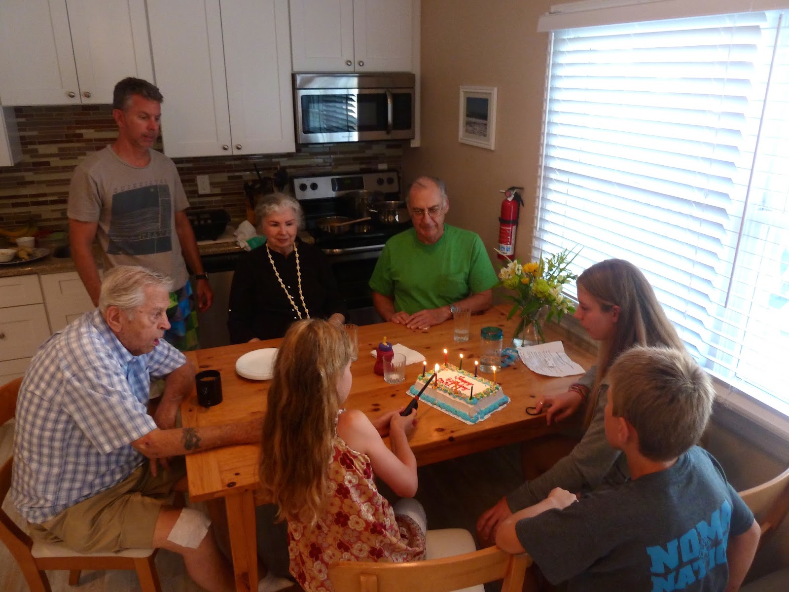 Party for Grandpa's birthday at our place, with Aunt Cathy and Uncle Steve